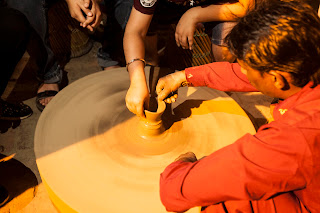 on a post-meal tour, witnessing bullock carts, pottery workshops, blacksmith