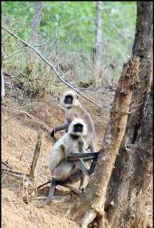 - खुले में घूमते लंगूर।