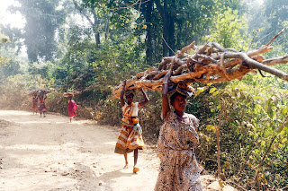 आदिवासी महिलाएं लकड़ियां सिर पर ले