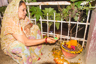In picture a devotee worshipping Tulsi plant.