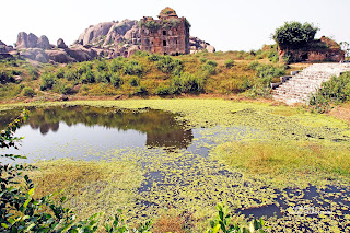 pond. Its waters, covered with hyacinth, beautifully reflected the remains of