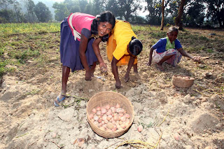 the photo: School girls harvesting potatoes in the countryside of Jharkhand.