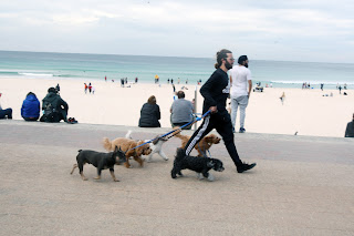 around Bondi beach in Sydney I found a person moving with ½ dozen puppies