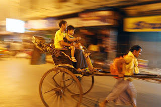 their wide eyes? There are about 18000 hand pulled rickshaw walas in the city,