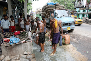 “bath” under a roadside tap, or simply trying to snatch some rest on