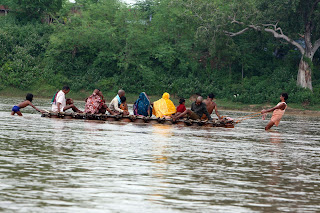 tightly bound earthenware pots, gently navigating the Falgu River. This